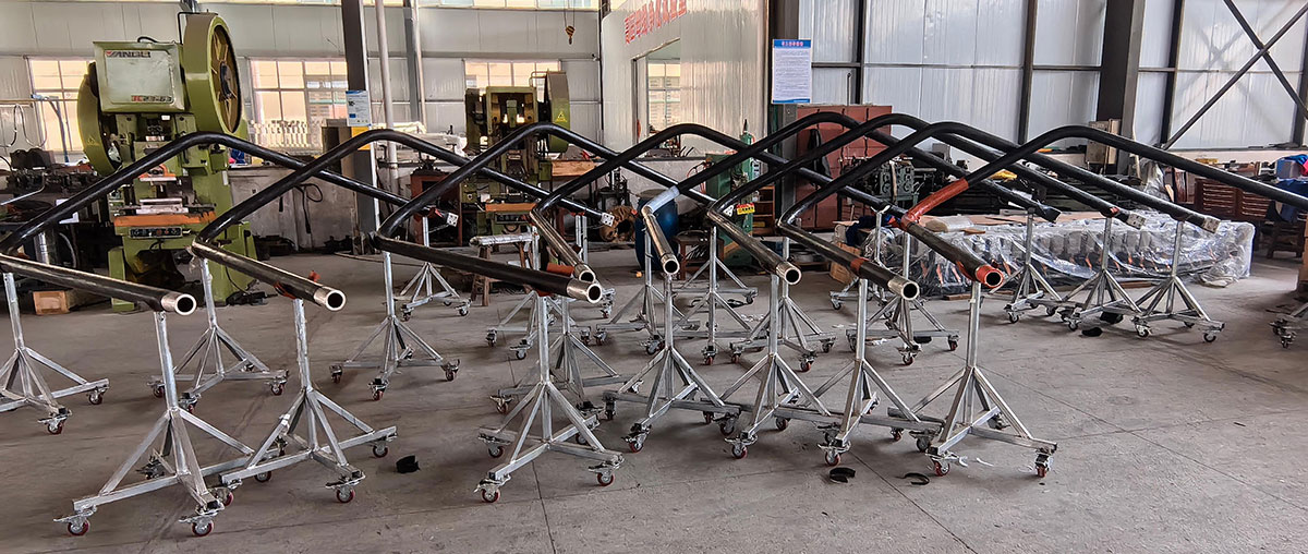 一、 導體精加工1、 材料選用:從倉庫領出經入廠檢驗合格的銅管,并核驗外徑、壁厚尺寸無誤。2、 導體鋸切:對照圖紙編號選擇裁切方案,充分利用庫存規格,避免浪費。鋸切完成的,在表面寫上相應的編號,用毛刷掏干凈銅管內的銅屑。3、 終端頭焊接:焊接前將銅管端頭用坡口機坡口(45°),用酒精清潔端部,將由本公司車削加工中心預制的終端頭內襯部分插入銅管端部,采用熱熔焊接方式將終端頭與銅管完整焊接,焊接完成打磨拋光焊接點后進行X光探傷檢測。4、 粘接法蘭:按照不同規格銅管的要求在適當的位置粘接法蘭,在粘接部位銅管表面打磨出50mm寬的毛糙面,并用無水酒精擦拭干凈毛糙面的灰層和毛屑后涂敷粘接AB膠,法蘭膠固化后將多余的膠打磨掉,以不影響緊固澆注嘴為準。5、 導體煨彎:對照圖紙,在數控彎管機上對導體進行煨彎,彎管后復核彎管尺寸,長度誤差≤2mm,角度誤差≤0.5°,煨彎完成后,對導體表面進行去毛刺和氧化層的打磨處理,用無水酒精擦除表面毛屑后進入凈化車間進行下道工序。二、 浸漬紙繞包1、 絕緣皺紋紙和半導體皺紋紙分開放在不同的潔凈容器內,防止混裝造成絕緣紙被半導紙污染(導電顆粒摩擦掉落至絕緣皺紋紙內)。2、 將導體在工裝支架上懸空支撐,繞包前再次清潔導體表面。3、 由經過崗前培訓的操作人員進行繞包作業,按照相應項目的繞包工藝單列明的屏位尺寸、繞包厚度進行繞包(直線和單水平彎母線采用機械繞包,立體彎母線采用人工繞包),由專職生產過程檢驗質檢員檢查屏位是否準確、檢查繞包松緊度和表面平整度。三、 外護套熱縮及布帶纏繞1、 根據電壓等級、電流大小、母線編號選擇正確的熱縮套管。2、 根據母線形狀制定熱縮管裁剪余量,一根母線必須采用整段連續長的熱縮套管。3、 套好熱縮管后進行熱縮,留下距離法蘭500mm左右的距離暫不熱縮,趁熱纏繞熱縮布袋,熱縮布帶按照2/3搭接,檢查是否有漏纏。待微涼后碼回未經熱縮的套管,露出法蘭在法蘭上安裝注膠嘴后補打法蘭膠(138/998膠組)。在法蘭膠未固化前把熱縮管抻出來進行熱縮,纏繞布帶,上喉箍,連接三通。在布帶表面標注母線編號。四、 真空澆注1、 一批次母線外護套熱縮并布帶纏繞完成后,放入熱風循環固化烘箱進行抽真空及注澆注料管線連接,進出料管線需與母線編號一致,進料端管線需在爐內卡死,防止水分蒸發到爐外。2、 常溫至105℃升溫,固膠,干燥水分,此過程設定為240分鐘(4小時)。3、 保持105℃,并對母線皺紋紙層間進行干燥、抽真空,持續1800分鐘(30小時)。該過程先啟動冷水機,然后啟動旋片泵,觀察真空度,60分鐘內真空度達不到2000Pa以內,則需檢查漏點,排除故障。300分鐘內真空度將達到1000Pa以內,則基本排除漏點存在的可能。從升溫開始1200分鐘后,真空度應達到300Pa以內,此時需緊固一次母線的法蘭抱箍,同時可以對母線進料端進行抽真空,當母線真空度維持在100-300Pa之間時,無需啟動羅茨泵,在第二個工作日下班前對環氧樹脂進行預熱,為第二天拌料做準備,注意觀察預混缶內料的數量,保證滿足相應母線的澆注用量。4、 爐溫從105℃降至65℃,在65℃時進行恒溫澆注操作,澆注的時間段時長不固定,以全部產品完全浸漬飽和為目標,一般時長不超過600分鐘(10小時),否則進料端環氧樹脂由于長時間處于室溫狀態,粘稠度變大,浸漬過程將變得非常緩慢。5、 澆注好的母線靜置大約40分鐘左右,以利于皺紋紙完全吸收,然后進行二次給料,先開進料閥,后松出料端卡箍,待出料端樹脂料進入料杯50mm以上高度時,用卡箍卡死出料管,然后關閉所對應的進料閥門。待一爐內所有的母線都澆注完成后,,關閉出料閥,并注意檢查每個出料閥都處于完全閉合狀態,防止排放壓力容器中的樹脂料時空氣進入母線內部,造成產品損壞。6、 以上工作完成后,關閉預混料缶的加熱,再關掉真空機組以及冷水機,打開本烘箱管道上所有沒有接產品的閥門,排凈管道和料杯內的負壓,然后關掉有料料杯的閥門,取下所有出料管上的卡箍,母線澆注完成。7、 排出進料端管路中環氧樹脂和固化劑混合后的余料,利用負壓吸入清洗液對管路進行清洗,清洗至管路中無混合好的樹脂料殘留。8、 啟動烘箱的風機和加熱按鈕,注意先后順序并確認此時段為程序設定的第5階段,這一階梯為65℃至130℃的升溫過程,時長為1080分鐘(18小時),此階段為環氧樹脂固化階段,應嚴格控制溫度時間曲線,固化時間和溫度達不到要求或超過要求都可能導致絕緣結構不穩定,環氧樹脂機械強度降低,因此如有停電通知要及早通知到生產部門,此階段如長時間停電,則產品基本上全部作廢。9、 當溫度升至130℃時,應恒溫持續840分鐘(14小時),此時段為絕緣料的纖維化過程,只要不停電,不用特別關注。10、 降溫固化過程,此時段設定溫度為130℃至30℃,時長為480分鐘(8小時),溫度緩降可以保證增加產品的硬度以及絕緣層的機械強度。11、 再在常溫下進行冷卻,冷卻完成后移出烘箱,在經過拆除熱縮布帶,引出接地線,打磨終端頭并鍍銀等一系列工序后,進行電氣性能檢測。檢測合格產品張貼產品標簽和合格證后進行打包,打包完成后放至待發貨區。特別說明:以上工藝流程的主要生產部件全部由本公司自主加工制造,并對澆注法蘭進行了絕緣化改進(采用環氧樹脂板車削法蘭),在導體與金屬屏蔽端間形成階梯式爬電面,增加母